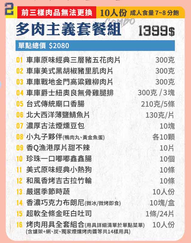 16.烤肉用具全套組合(含爐架+網、炭、獨家煙燻烤肉醬等共14樣用具) /10人份